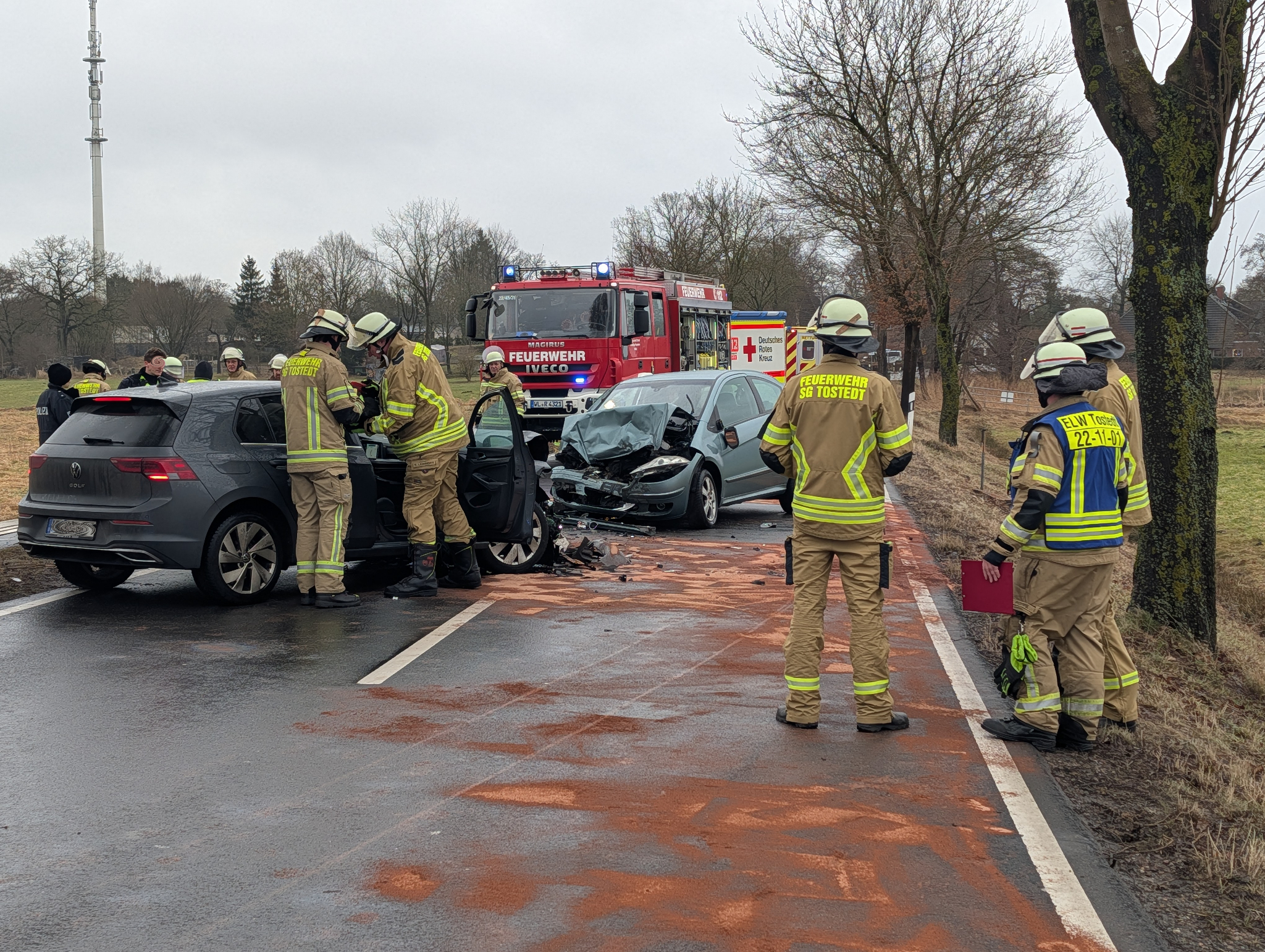 Aus bislang ungeklärter Ursache kollidierten zwei PKW auf der Landstraße L141 zwischen Welle und Kampen, dabei wurden drei Personen verletzt.